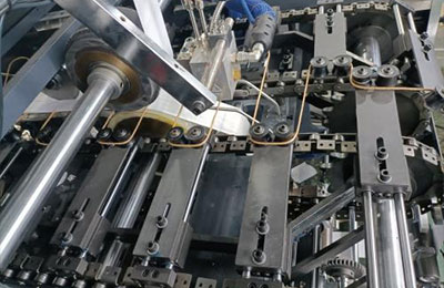 扭纸绳手柄制造机采用水胶/热熔胶,操作简便,生产速度快,通常每分钟可生产130对手柄。